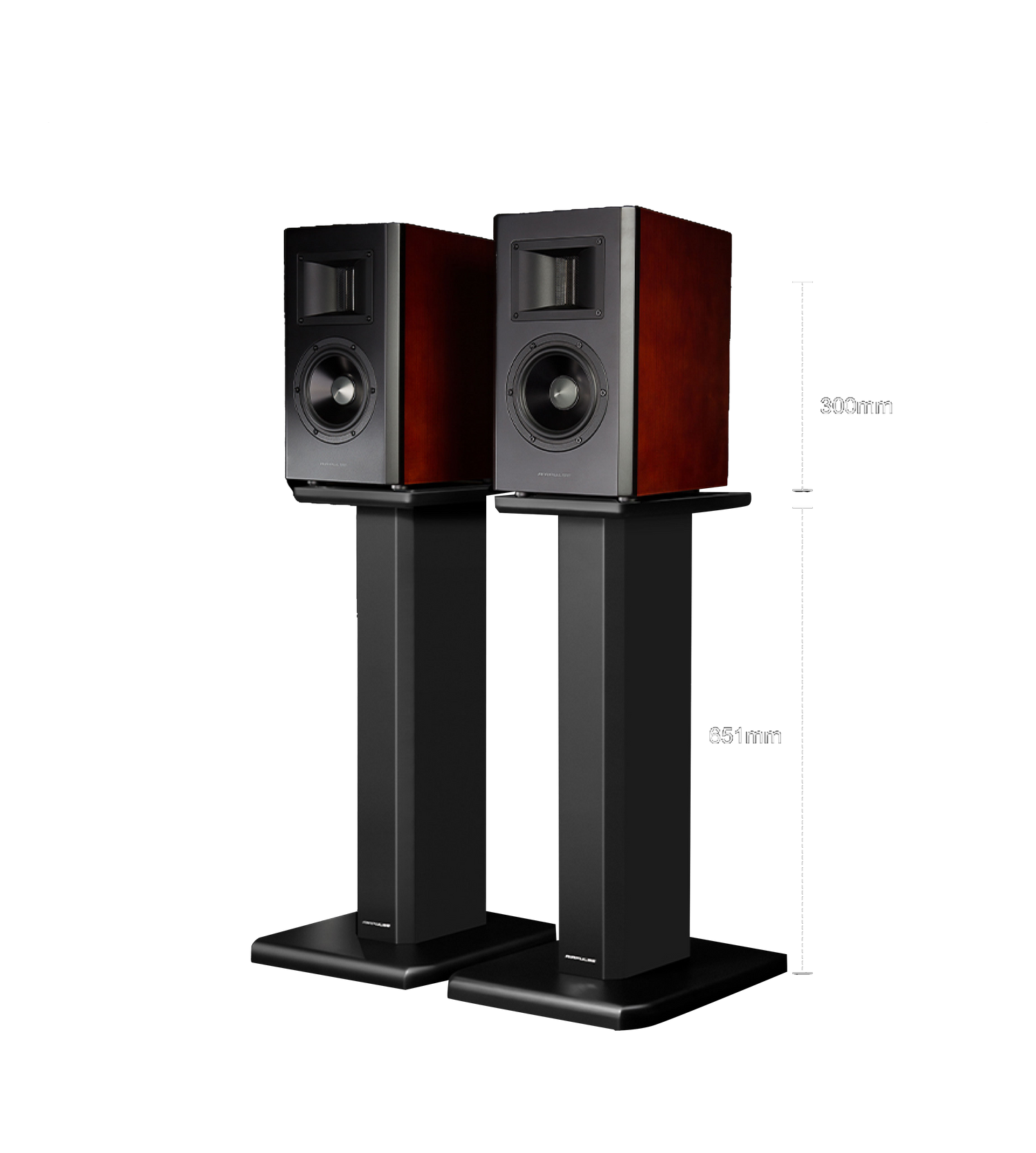Designed to be a visual extension of the A300Pro, the color finish, and shape on the front part of the stand columns is the same as the front baffle of the speaker.
