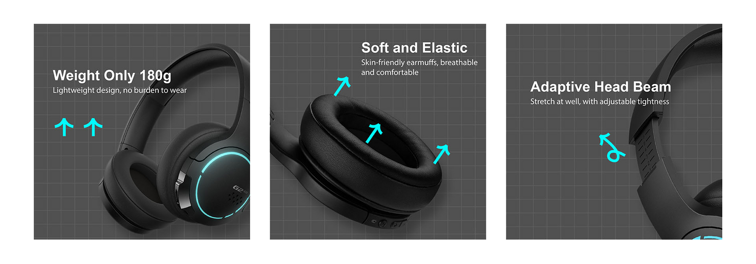 Weighing a mere 180g, relish prolonged gaming sessions in sheer comfort with the expandable head beam and gentle elastic earmuffs, ensuring day-long ease and enhanced breathability. Additionally, it accommodates glasses wearers without compromise.