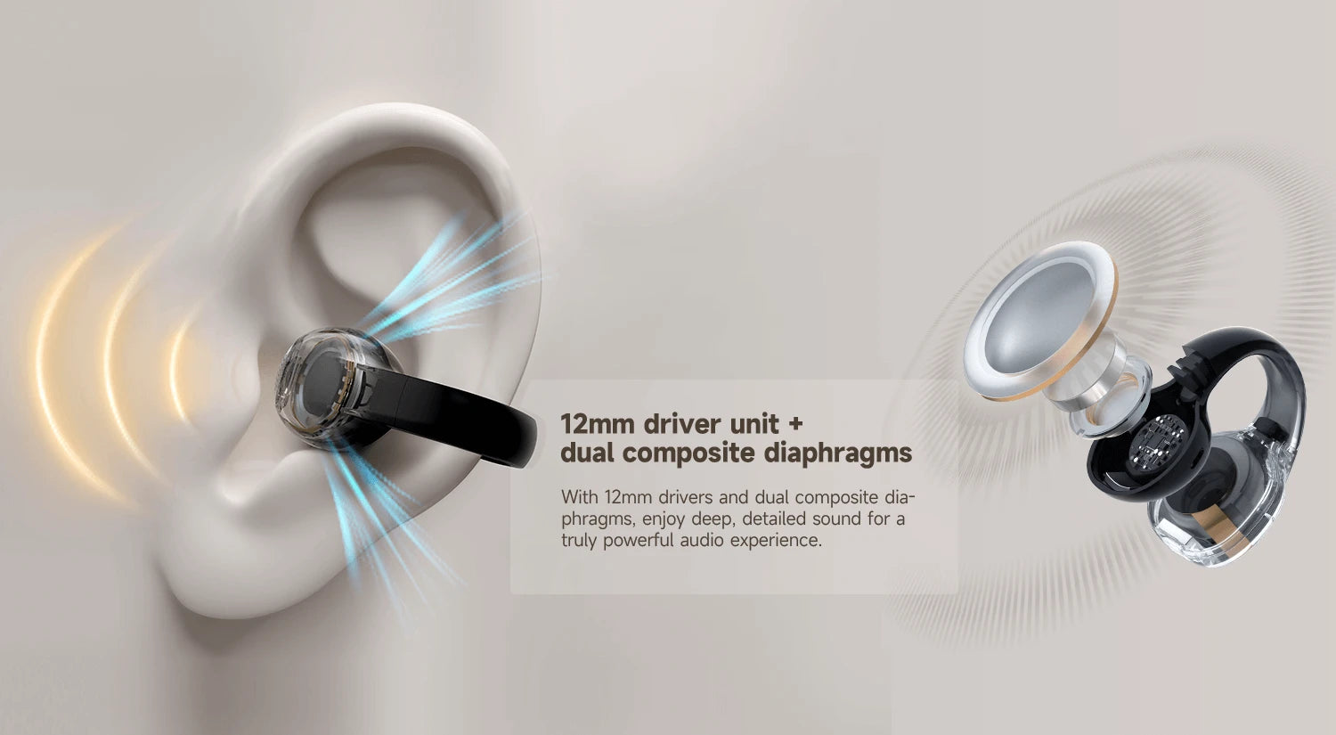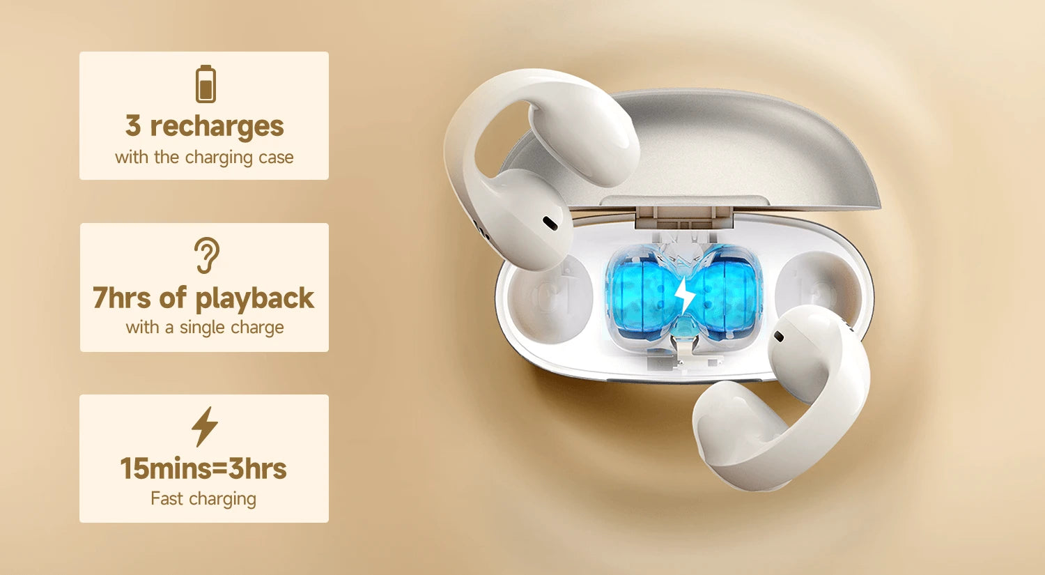 Experience all-day comfort with an open-ear clip-on design that’s light and pressure-free, you'll forget you're even wearing them.