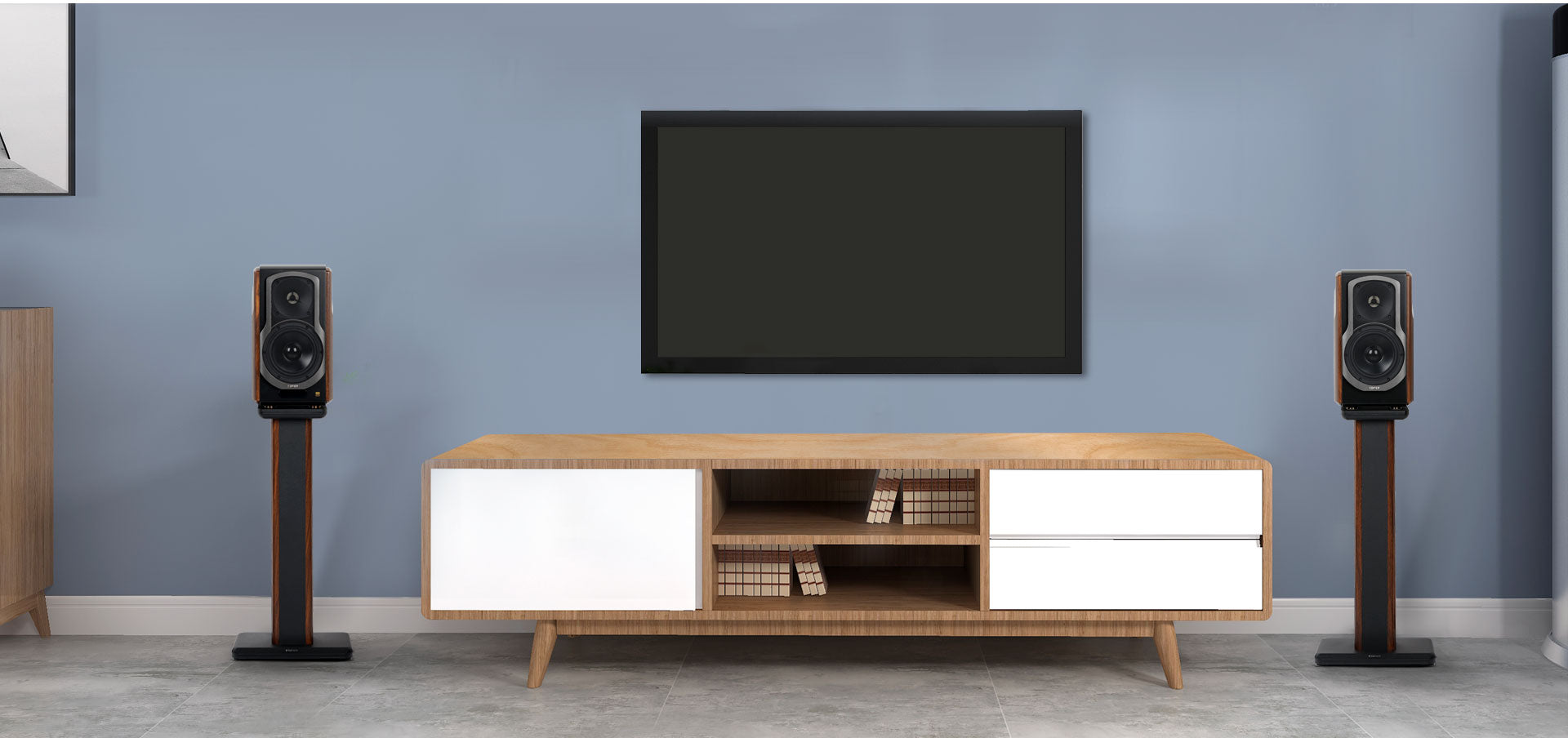 The same design style as is used in S2000MKIII speaker, the stands complement the gorgeous cabinet of the S2000MKIII anywhere in your home.