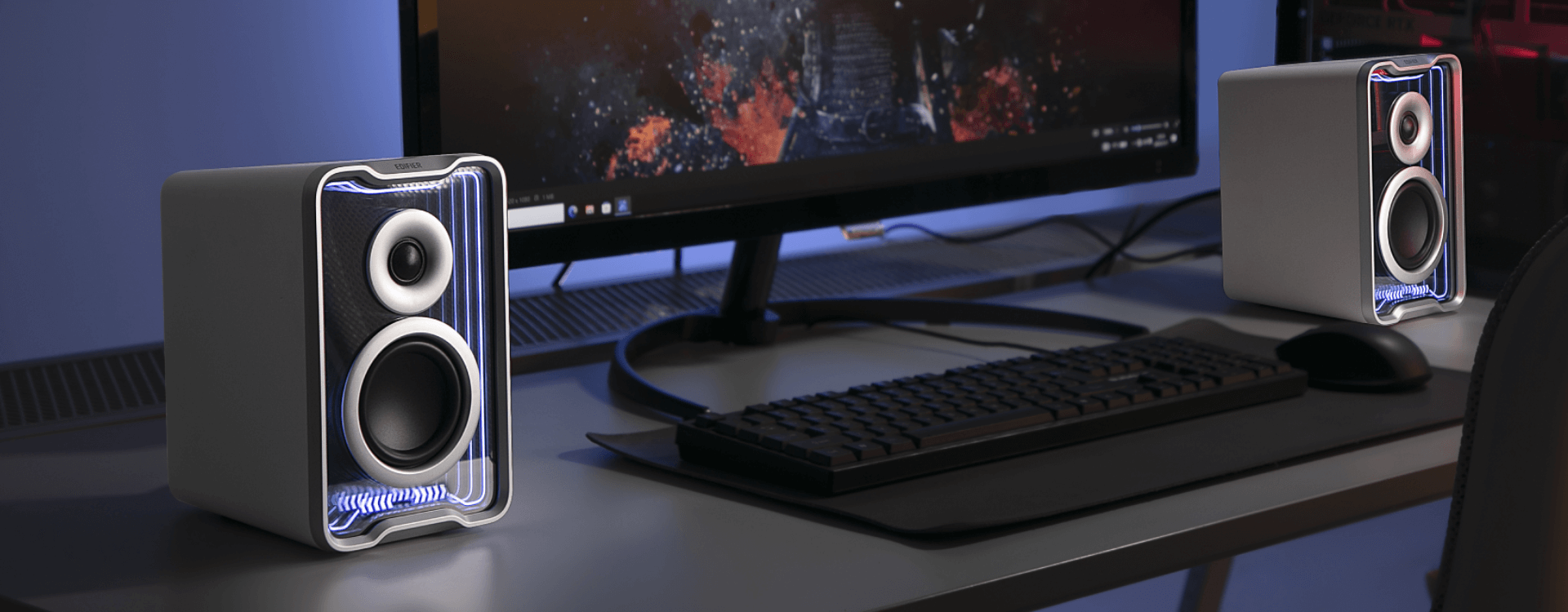Driven by our patented TempoAbyss technology, the integrated lighting system offers 12 preset effects, all customizable through the EDIFIER ConneX (mobile) or TempoHub (PC) apps. Adjust brightness or change effects directly using the dedicated "LIGHT EFFECTS" knob.