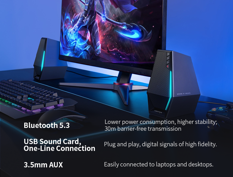 Equipped with a built-in sound card and finely tuned EQ algorithms for gaming, movies, and music, ensuring a versatile audio-visual entertainment experience.