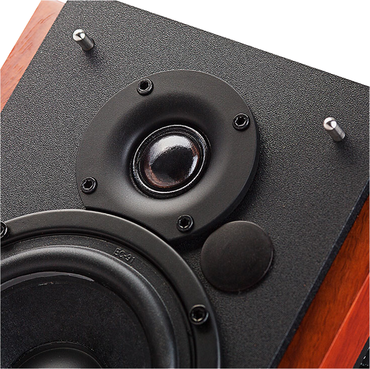 The versatile R1700BT Bluetooth bookshelf speakers will have you wanting to play every device off them. Plug in your gaming console, computer or TV for exceptional sound quality. The multifunctional excellence that illuminates from these Bluetooth bookshelf speakers delivers such clear entertainment value. The R1700BT has built in Digital Signal Processing (DSP) and Dynamic Range Control (DRC) to prevent distortion; Hi-tech bookshelf speakers truly fit for your listening experience. The R1700BT Bluetooth bookshelf speakers allow for clean aesthetics without losing quality or performance. It brings new meaning to clear sound. Fashioned with a 10-degree angle to direct the sound exactly at you, it creates a better listening experience as it reduces interference.
