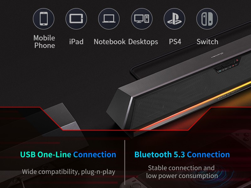 Enjoy the flexibility of both USB one-line connection and Bluetooth 5.3 connectivity, allowing seamless switching between modes to deliver optimal performance in any situation.