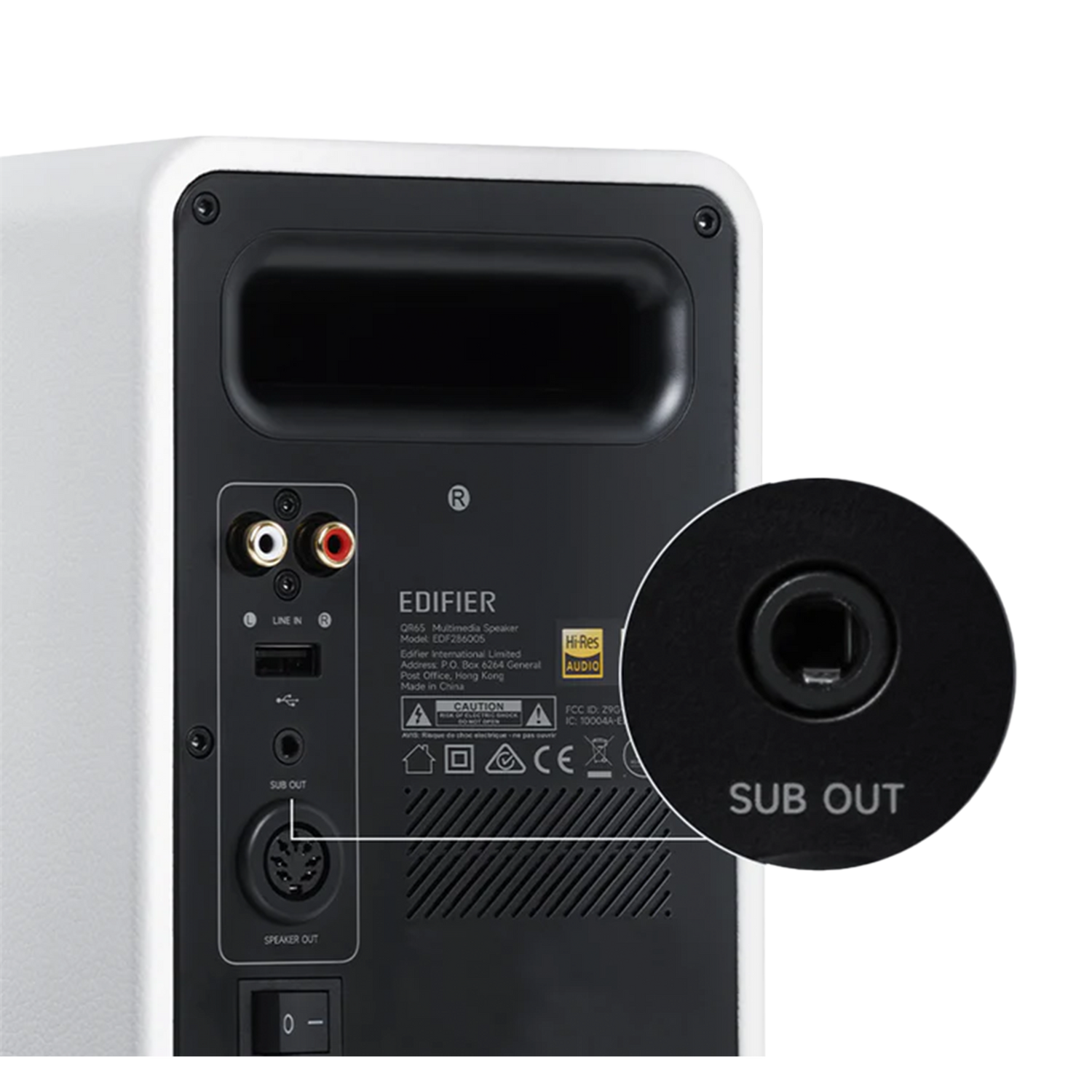 The QR65 features a rear SUB OUT port, making it easy to connect an external subwoofer for enhanced bass performance.