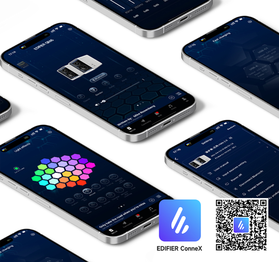 Effortlessly manage playback, fine-tune audio enhancements, customize lighting effects, and discover even more features to match your preferences, with the EDIFIER ConneX App.