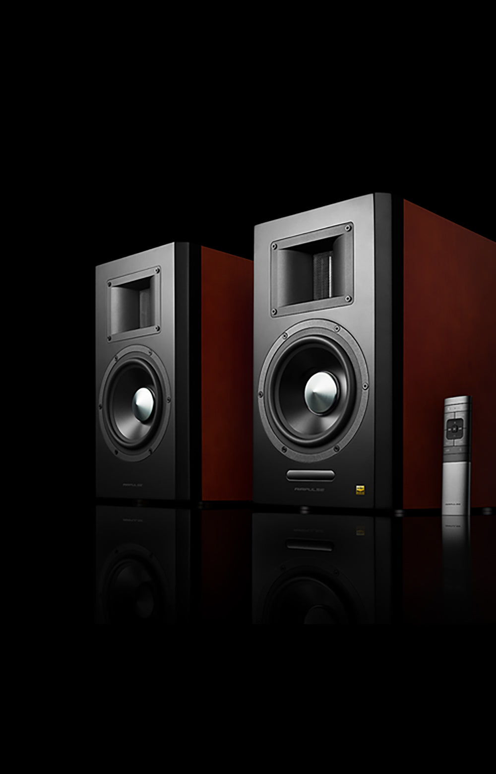The A300 uses a thin aluminum horn loaded ribbon tweeter which extends frequency range and a well-defined resolution reaching to 40KHz high frequencies. The horn shape adds to a three-dimensional sound as the ribbon tweeter is aimed at the listener and minimizes unwanted effects from room reflection.