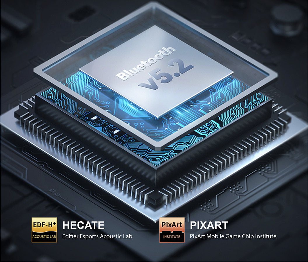 HECATE Edifier E-sports Acoustics Lab partners with PixArt to enhance gaming experiences. Leveraging Bluetooth V5.2 and PixArt's low-latency mobile game chip, it elevates wireless gaming performance. This collaboration cater specifically to esports enthusiasts. ensuring seamless and professional.
