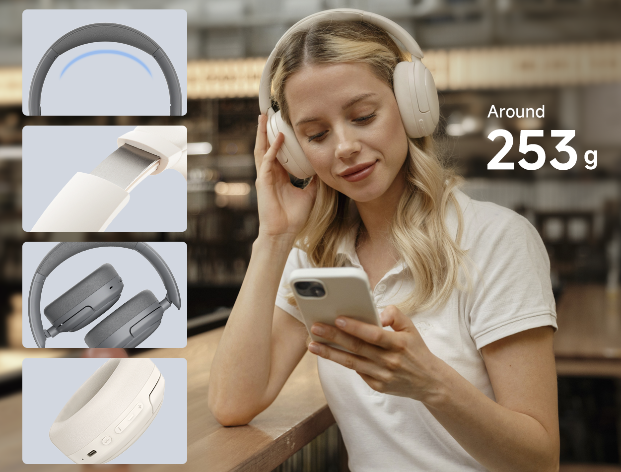 Combined with a lightweight body, a pressure-relief headband, and soft ear pads, it offers an unparalleled comfortable wearing experience.